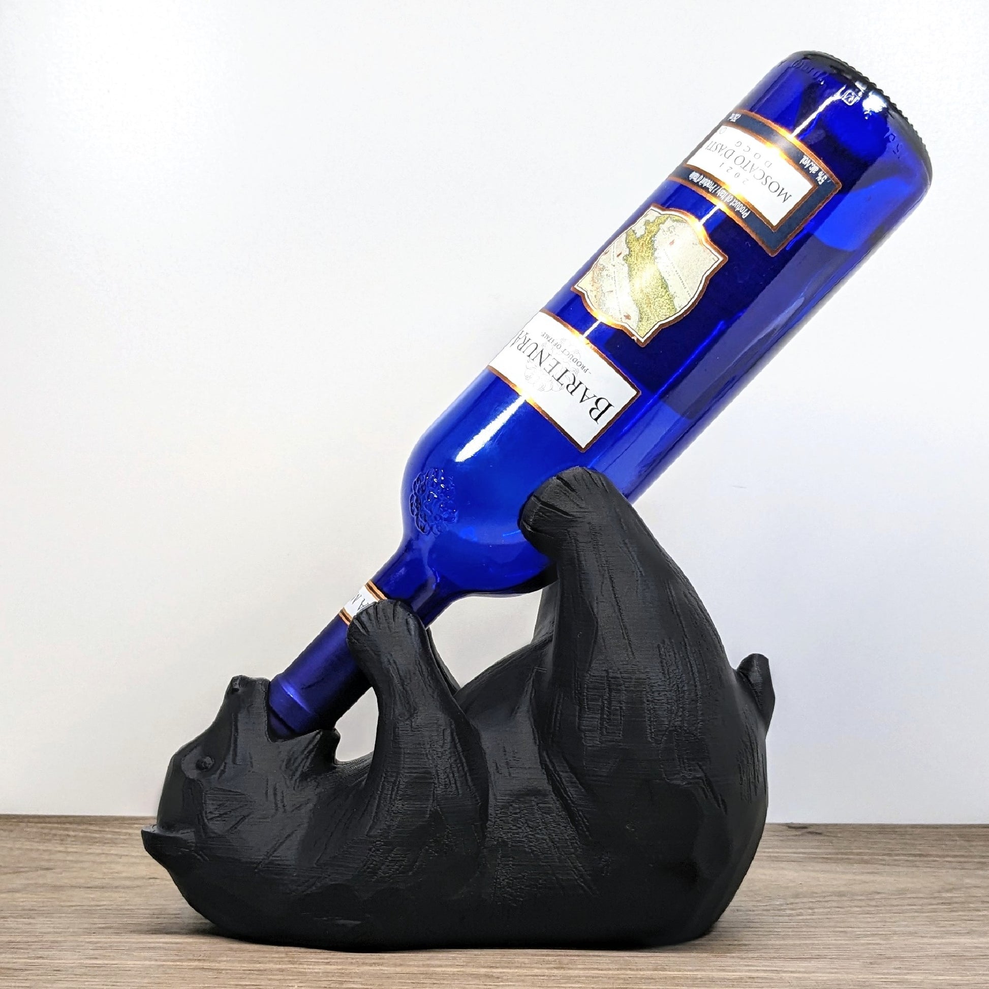 This 3D printed wine holder is a charming and functional accessory that adds a unique touch to your wine collection or table decor. The adorable bear features a geometric pattern which gives it the appearance of being carved from wood. Whether you're hosting a dinner party or just enjoying a glass of wine on your own, this wine holder is sure to impress.