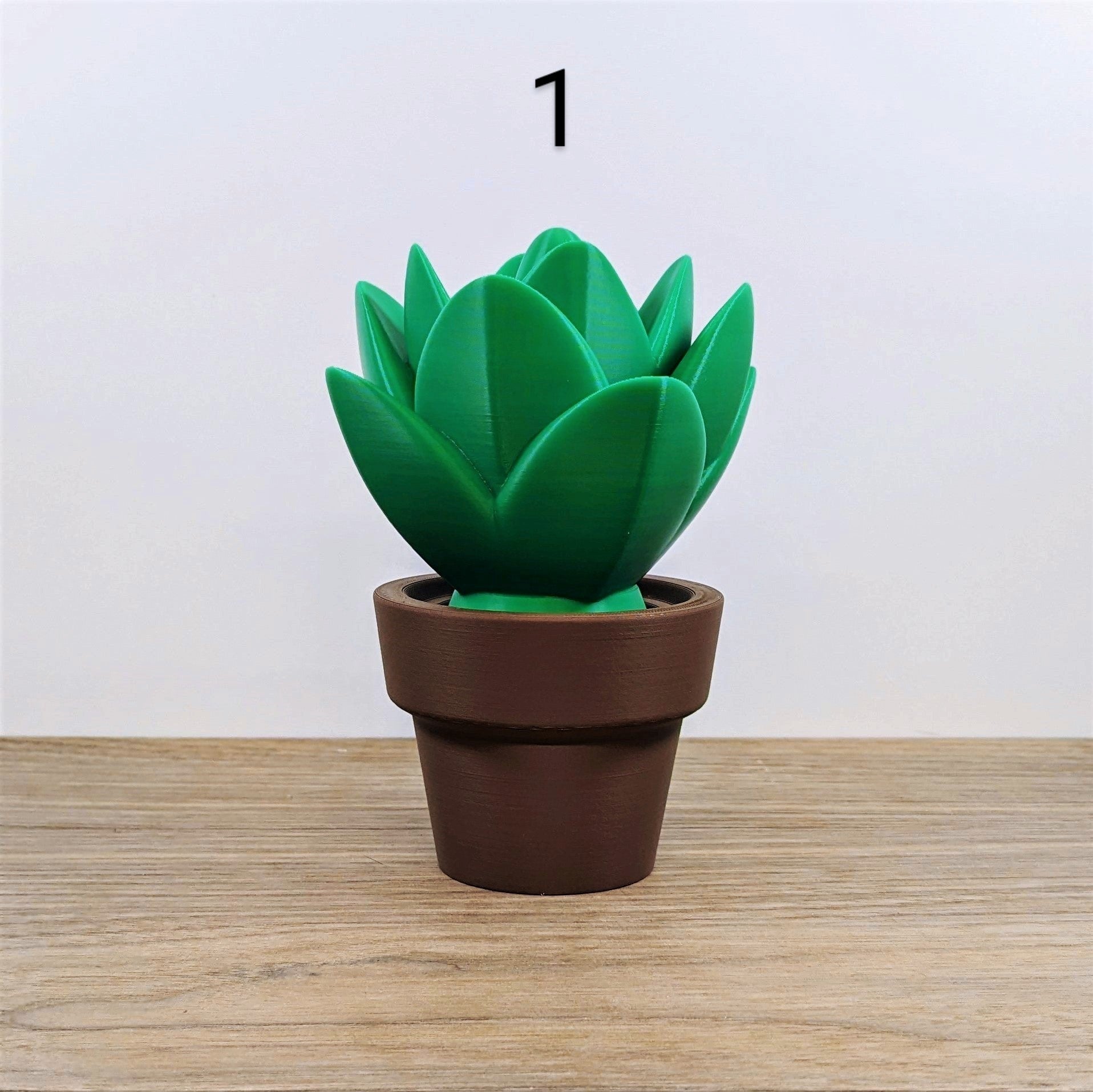 These delightful 3D printed succulents offer a fun and whimsical touch to your home, office, or as a thoughtful gift. With four distinct styles each perfectly sized for display on desks, shelves, and tables, you are sure to find the perfect decoration for your space.