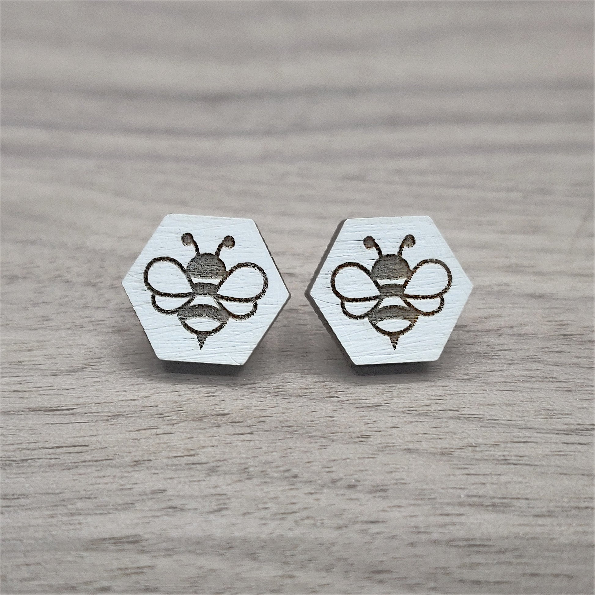 With a simple design and unique craftsmanship, these stud earrings are sure to stand out in your collection. Made from 1/8” thick wood and hand painted, these studs are bold and lightweight. Featuring hypoallergenic stainless steel posts and backs for those with sensitive skin.
